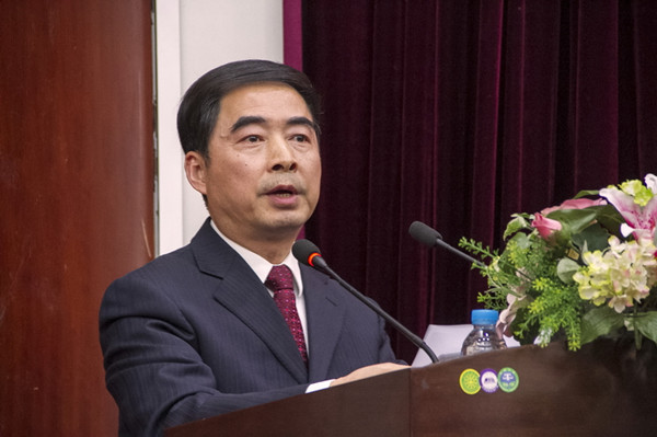 颁奖仪式过后,冯庆华副校长发表了重要讲话。他首先代表上海外国语大学党政领导对学术文化节开幕,对荣获全国优秀博士学位论文指导教师的束定芳教授,全国优秀博士学位论文的获得者田臻博士表示热烈的祝贺。他指出,学术文化作为大学校园文化建设的核心内容,既是校园文化的灵魂和根基,也是大学发展的引领和支撑,更是大学精神的积淀和体现。一年一度的研究生学术文化节,对营造我校浓厚的学术氛围和优良的学风,提高我校研究生学术科研能力和创新精神,加强我校同兄弟院校研究生之间的联系和互动等方面,发挥了重要的推动促进作用。他强调,我校一直将提高培养质量作为研究生教育的根本目标,拔尖创新人才培育工作是我校研究生教育尤其是博士生教育内涵建设的重要组成部分。除了举办研究生学术文化节,为研究生搭建立体、丰富、广阔的学术文化交流平台,学校还采取了设立优秀博士学位论文培育基金、研究生国际化教育基金、研究生科研创新基金等一系列措施,为研究生站在学术最前沿提供了强有力的支撑。通过全校上下坚持不懈的努力,近年来,我校在全国学科评估、全国优秀博士学位论文评选、上海市研究生优秀学位论文评选中屡获佳绩,尤其田臻博士荣获的全国优秀博士学位论文更是取得了历史性的突破。全国优秀博士学位论文评选活动的评选工作是由国务院学位委员会批准并组织进行,是衡量全国各研究生培养单位博士生培养质量的重要标志,已成为全国重点学科评选、一级学科整体水平评估、相关大学排行评比等各类高等教育评估的重要指标。此项评选工作始于1999年,外国语言文学一级学科下迄今仅有11篇论文获选,年均不足1篇,其难度可想而知。他表示,田臻博士取得的成绩,与束定芳教授的精心指导和田臻博士本人的刻苦钻研密不可分,希望导师们以束定芳教授为榜样,潜心学术、精心指导研究生;更希望研究生们以田臻博士为榜样,为实现自己的学术理想,心无旁骛,一心向学,争取早日取得更大的科研成绩,为所在学科的进步贡献自己的力量,为我校落实“四、三、二、一”发展战略,向“国际化、有特色、高水平、多科性、国际知名、国内一流的外国语大学”的目标迈进贡献自己的力量!