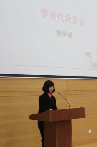 随后,青马班学员代表傅伊迪同学则以“成长”为主题发表了感想。她表示在团学联的工作使她在执行力、办事能力、视野方面得到了锻炼,引起了台下同学的共鸣。学联是一个促人成长的平台,给了每个成员激励自己,收获经验与成长的机会。
