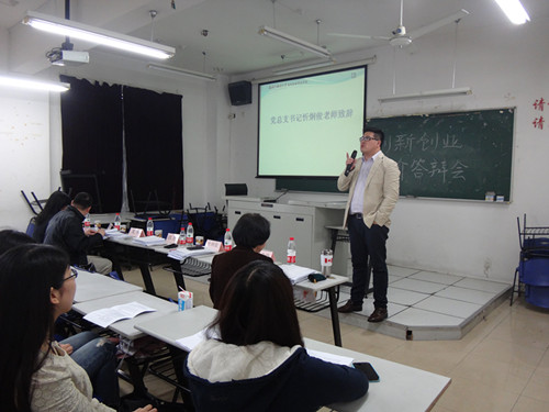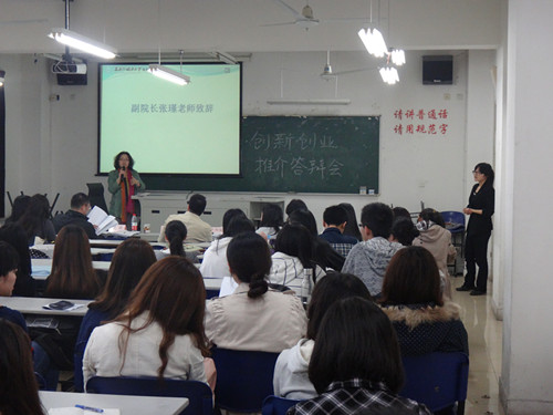 金贸学院党总支书记忻炯俊老师为会议热情致辞,强调了大学生创新创业项目的重要意义,鼓励同学们敢想并且敢做,同时对同学们给予了厚望。副院长张瑾老师对创新创业的项目开展情况以及相关管理制度,申报运作流程等内容进行了详细的介绍,并解答了同学们的疑问。罗雪梅老师针对组队、选题和项目书撰写等问题,给予风趣幽默的指导,鼓励同学们进行跨院、跨专业、跨年级以及跨性别的“四跨组队”。夏霁老师则对项目经费的使用与报销的注意事项做了详尽的解释。2012年立项的两个项目组组长与成员介绍了立项答辩与项目运作的经验,为即将参与立项答辩的2013年项目组提供了启示。