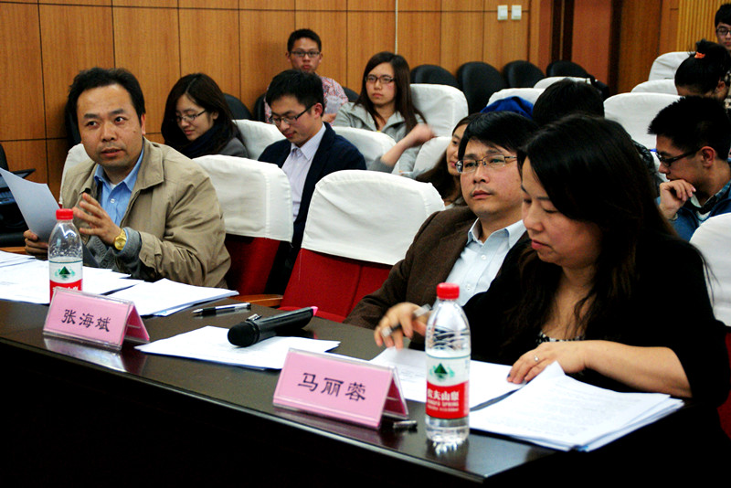 复赛论文答辩分为选手论文阐释及评委老师提问两个环节,在历时三天的复赛答辩中,胡礼忠、赵鸣歧、张海斌、张绍铎、马丽蓉等十位老师莅临现场,担任复赛评委,对选手的论文进行点评与提问。评委老师们渊博的知识、高深的学术造诣本身也构成了读书奖一道亮丽的风景线。在现场答辩环节中,他们妙语连珠、旁征博引,不时赢来同学们热烈的掌声;而在提问环节,评委老师们真诚严谨的治学态度也给大家留下了深刻的印象。