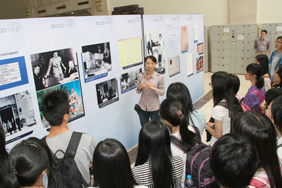 5月15日下午,英语学院等近百名师生在松江校区图文信息中心展览现场听取了上海交通大学钱学森图书馆工作人员的详细讲解。