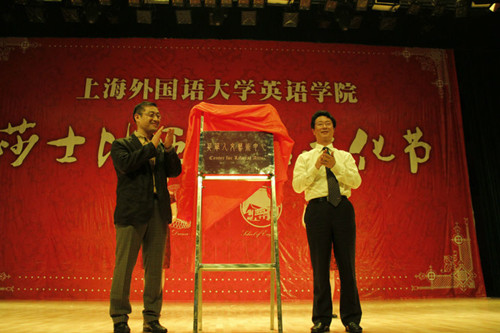 “英华人文艺术中心”成立仪式于2013年5月30日晚在第十七届“莎士比亚英语文化节”戏剧公演现场顺利举行。上海外国语大学英语学院院长査明建和党总支书记李尚宏共同为英华人文艺术中心揭牌。英国驻沪领事馆文化教育处人员,上外多个学院、部门的领导、老师以及英语学院数百名师生出席了此次成立仪式。