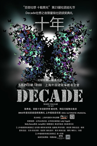 2013年5月29日,恰逢上海外国语大学社团联合会成立十周年之际,由上海外国语大学社团联合会主办的“Decade社想之夜”主题晚会暨星级社团颁奖典礼圆满落幕。至此,由“CITYWALK行走上海”第二季、“Green Your Life绿动生活”环保游园会、星级社团评审会以及Decade社想之夜颁奖晚会三部分组成的上海外国语大学第二十三届社团巡礼节画下了圆满的句号。