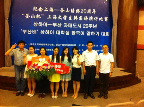 上海外国语大学、复旦大学、上海商学院、上海海洋大学和上海第二工业大学等五所高等院校参加了比赛。比赛分低年级组和高年级组,各设一二三等奖。为筹备此次比赛,韩语系教师金永奎、李钟洙和外教严糯英专门组成了指导团队,精心策划,耐心指导。经过激烈的比拼,我校二年级易乐文和刘韵同学分获低年级组一、二等奖;三年级的杨馥婧同学荣获高年级组一等奖。我校一等奖获得者将于暑期出访韩国釜山。