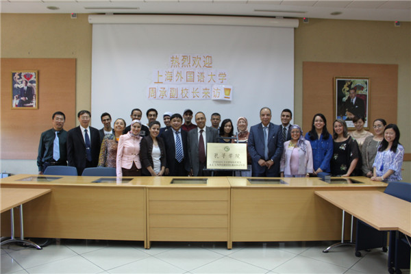 (周副校长与哈桑二世大学孔子学院师生)
