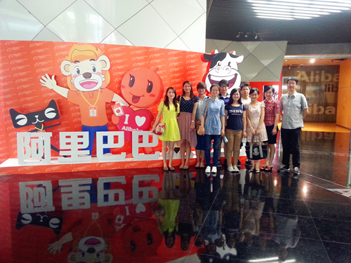 此外,访问团还参观了位于滨江新园区的阿里巴巴(中国)网络技术有限公司。阿里巴巴是由马云在1999年一手创立的企业对企业网上贸易市场平台。现有淘宝、一淘、天猫、聚划算、阿里国际业务、阿里小企业业务和阿里云七大事业群,已然成为全球领先的电子商务公司。当天,首先由接待员向我们介绍阿里巴巴的创建发展历程,充分体现了阿里巴巴独树一帜的企业文化。随后,我们来到了公司的信息数据呈现厅,那里呈现了非常完备、详细以及全天实时更新的外贸、内贸各方面的信息数据。解说员的详细解说更是为我们揭开了阿里巴巴幕后的冰山一角。在数据的背后,我们不仅感受到了企业目前所取得的成功,更感受到了一个成功企业背后凝结的多方努力。