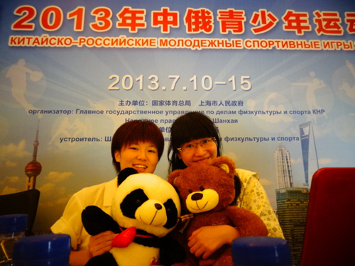 其次,志愿者们在赛场外都是认真敬业的导游和导购员。此次运动会的主题为“欢乐与友谊”,旨在使中俄青少年运动员们友好愉快地欢度在上海的时光。这就要求赛事志愿者们不仅要在赛场上做好翻译工作,在场外也要陪同以确保各代表队的游览购物顺利进行。在带领俄罗斯跳水队参观游览上海东方体育中心时,我校研究生院的王硕同学与俄跳水队教练员队员一道接受了上海五星体育记者的采访。在采访中俄方教练帕维尔和小队员尤利娅盛赞此次赛事的接待工作,并衷心感谢了组委会工作人员和志愿者们对他们无微不至的热情服务。在短短的五天时间里,上海的各大旅游购物景点:外滩、东方明珠、豫园、淘宝城……都留下了我校志愿者与远道而来的俄罗斯客人们的欢声笑语。
