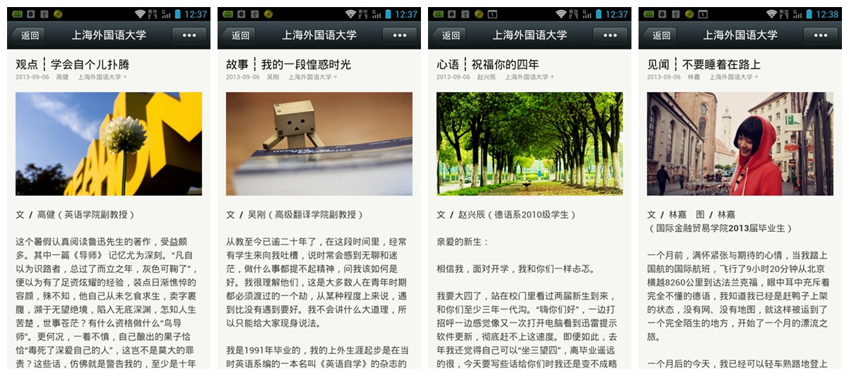 (六)欢迎师生、校友、教工,以及曾与上外结缘的各界同侪积极赐稿。无论你身处何方、身兼何职,这里都为你提供激扬文字的机会。