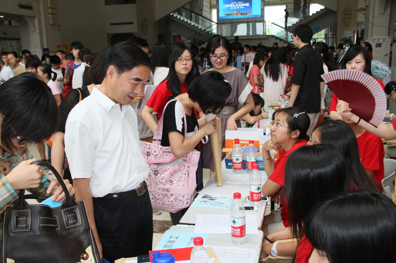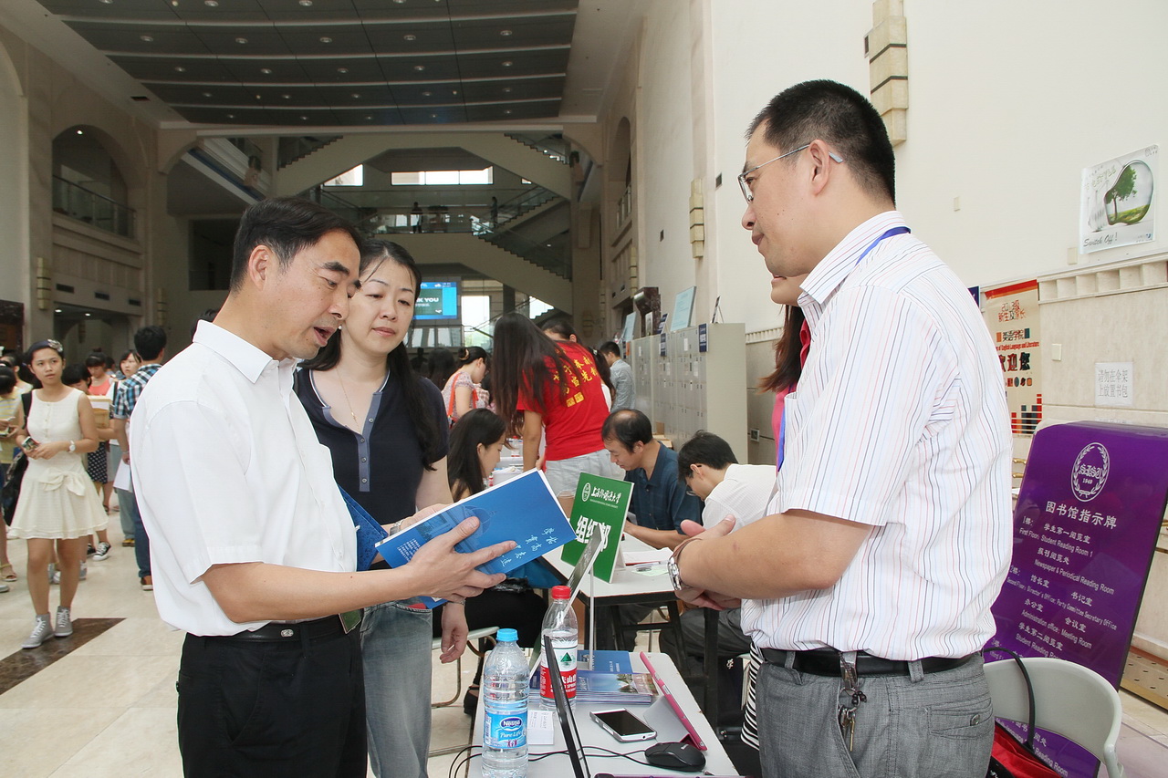 在图文信息楼中心大厅中,新生注册报到现场工作有条不紊,工作在一线的老师和学生志愿者们热情周到的服务,让每位新生和家长感到倍加温馨。校领导来到报到现场,与正在工作的师生们亲切握手交谈,向他们付出的辛勤劳动表示感谢,并嘱咐大家要工作热情周到、耐心细致,为迎新创造一个良好的工作氛围,给新生和家长留下美好的印象;并勉励新生尽快适应大学校园的生活,树立远大理想,努力学习,完善自我,成为一名优秀的大学生。