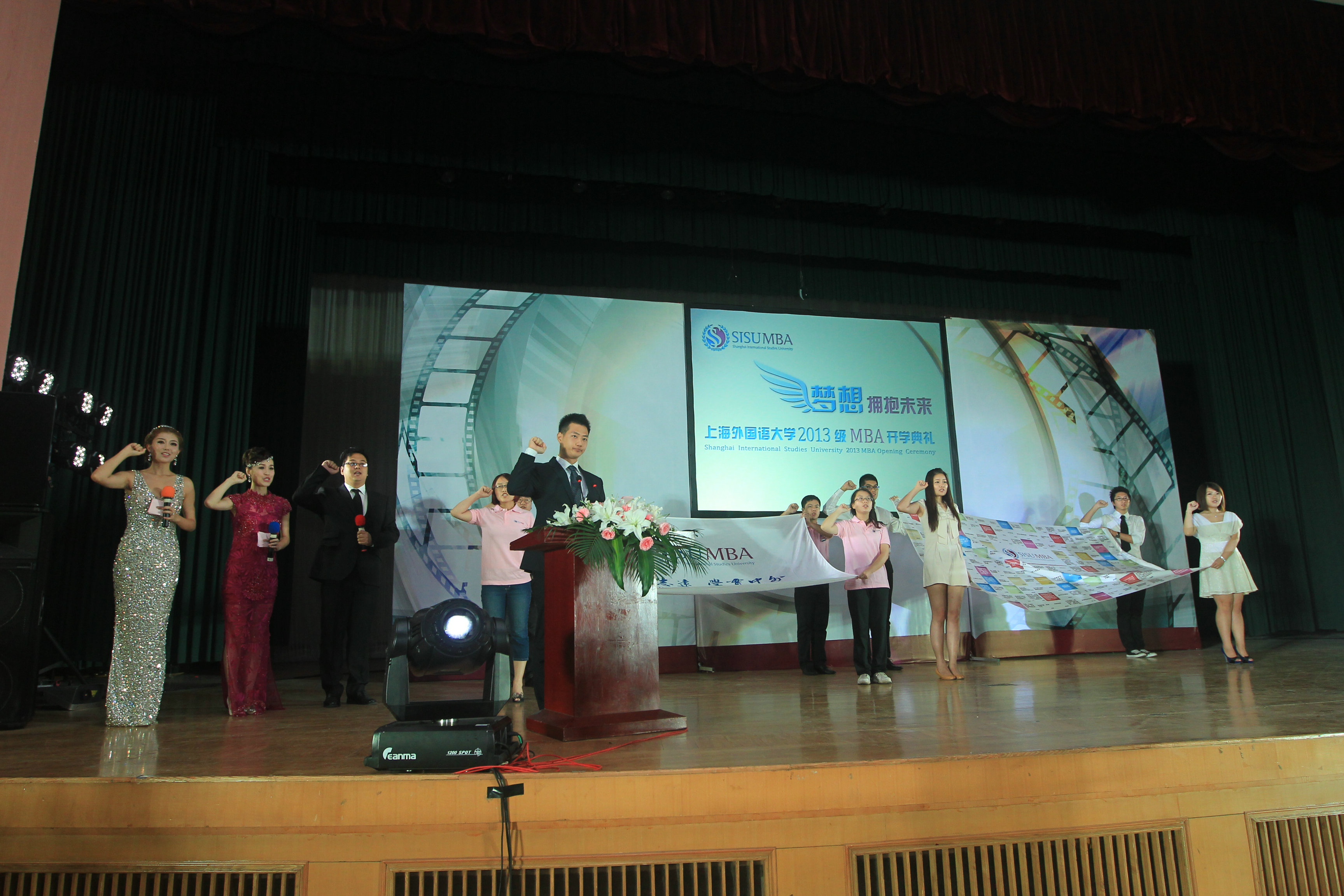 2013年9月1日,上海外国语大学2013级MBA项目开学典礼在逸夫会堂举行。本次开学典礼以“梦想拥抱未来”为主题,用微电影的形式展现了新生对梦想的思考和对未来在上外MBA学习的憧憬。这部名为《青春,让梦想飞扬》的微电影由上外MBA2013级新生自编、自导、自演。而整场开学典礼也是按照上外MBA一贯的传统,有新生自主策划、自主举办的。本次开学典礼不仅呈现了上外MBA同学的梦想,更展示了上外MBA项目通过打造跨文化的无国界管理人才来助力全体新生“梦想拥抱未来”。