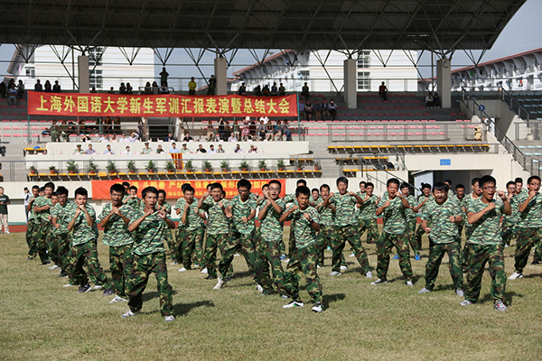 9月27日上午8:00,秋高气爽,沙场点兵,上海外国语大学2013级新生军训阅兵式暨总结表彰大会在松江校区体育场隆重举行。军训总指挥校党委副书记李月松、武警上海总队二支队队长周峰上校等领导出席大会。大会由保卫武装处处长龚凡主持。机关各部门负责人、院系总支书记及全体教官、各连指导员参加大会。