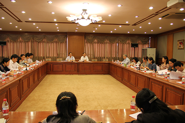 在听取意见环节,新闻学院院长郭可、教务处处长李基安等分别从本单位工作角度,就全外语课程的设计和建设进行了热烈讨论。