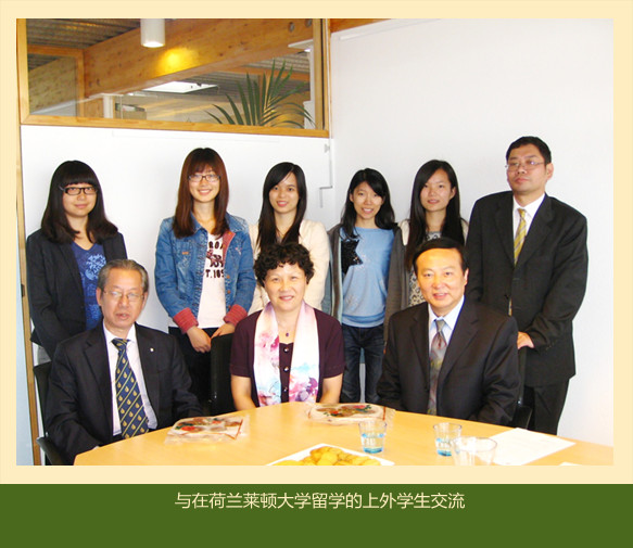 此次出访正值我国中秋佳节期间,王静代表学校看望了目前在莱顿大学学习的5名上外学生,向在海外的上外学子赠送了中秋月饼,祝她们中秋快乐,同时与她们进行了轻松的座谈,勉励她们在莱顿大学学有所成、学有所获,密切与母校保持联系,为学弟学妹们树立良好榜样。