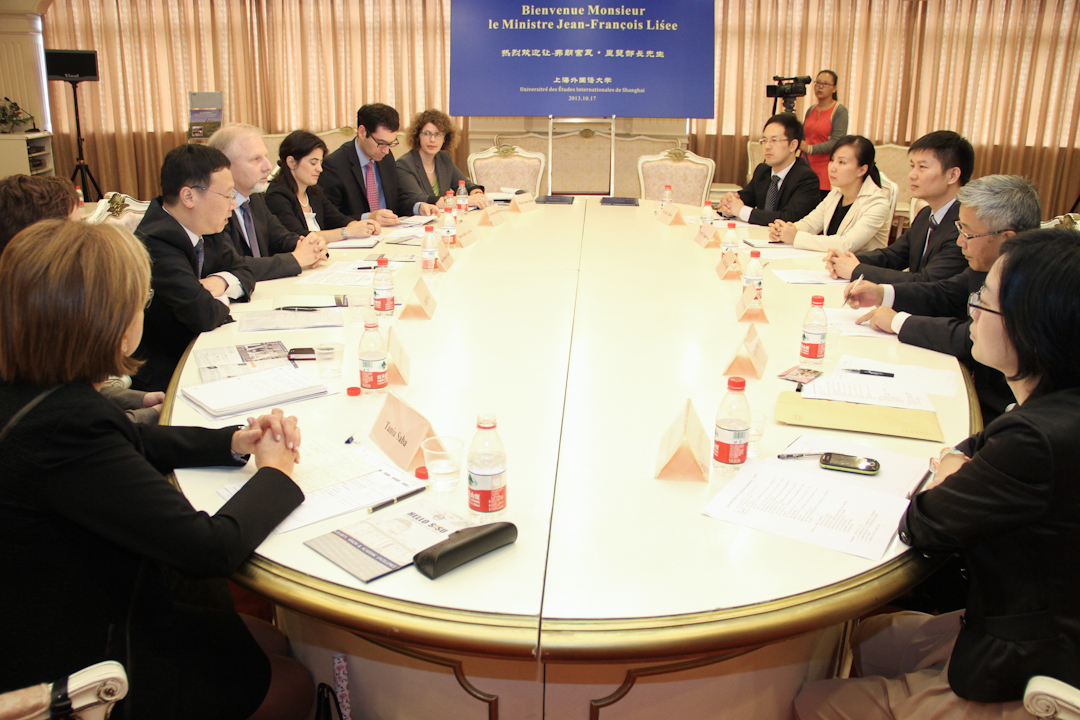 张峰副校长首先代表曹德明校长对部长的到来表示热烈欢迎。他向里瑟部长简要介绍了我校的建校历史、办学特色、学科建设、科研和国际交流情况,并且重点介绍了我校法语系。他说,上外立足多语种、跨学科的发展优势,在我国语言学界和国际关系学界有着较高的地位,并将国际化办学作为核心战略。在此基础上,我校不仅重视本校教师的海外进修和培养,也注重从国外著名大学引进优秀的师资。张峰副校长说,此次里瑟部长的到访必将进一步深化双方的全面合作,我校也会全力支持并对此充满期待。