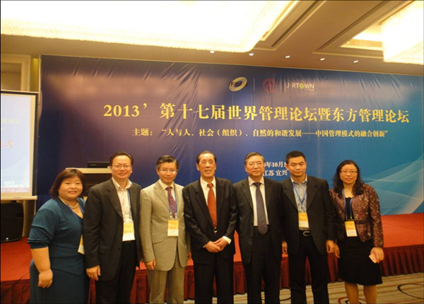 我校东方管理研究中心参与承办的第十七届世界管理论坛暨东方管理论坛于2013年10月19—20日在江苏宜兴万达艾美酒店召开,论坛主题:“人与人、社会(组织)、自然的和谐发展----中国管理模式的融合创新”。来自海内外的300多名专家学者、政府官员和企业家参加了大会,并围绕论坛主题,从东方管理思想的实践、中国管理模式的创新、中国管理学与管理学本土化研究、养老产业的发展及新型城镇化发展战略等专题展开深入研讨与交流。我校党委书记吴友富教授应邀参会并作了题为“全球经济治理秩序变迁的阻力与中国话语权提升的路径”的主题报告。
