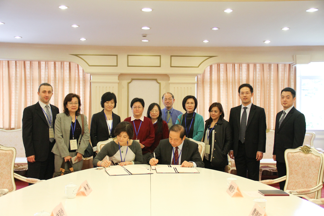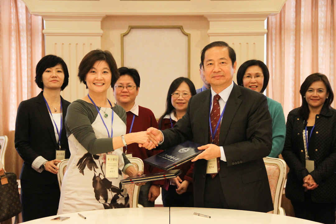 10月26日上午,上海外国语大学与台湾文藻外语大学师生交流合作协议签字仪式在虹口校区凯旋厅举行。曹德明校长与文藻外语大学林思伶校长共同在协议书上签字。该协议的签署标志着两校间实质性的师生交流与合作将得到进一步推进,并且两校将实施交换学生项目。