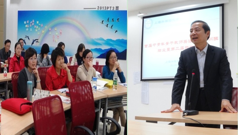 上海外国语大学第二届中青年骨干教师英语能力培训班开班暨首届结业典礼10月23日在虹口MBA教室顺利举行。曹德明校长应邀出席会议并作重要讲话,会议由人事处孙信伟处长主持。