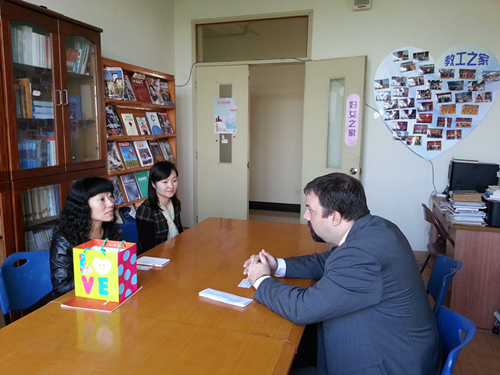 西方语系党总支书记王岩老师首先向Ryan先生简要介绍了西方语系,并就我系近些年的发展做了详细陈述。Ryan先生对我系的机构设置,培养模式和教师资源表示了肯定,并对我系未来的人才培养计划与王岩老师进行了探讨。王老师提到,上海外国语大学的英文名称是“SHANGHAI INTERNATIONAL STUDIES UNIVERSITY”,这就意味着我们的培养目标不仅仅是语言,而是能够利用语言开展国际交流国际研究的复合型国际化人才。在过去的五年间,我们积极开拓对外联系,不断延伸国际化平台,为学生创造交流机会,在未来的五年,我们将在国际化视野下,结合国内外社会的需求,培养能够对中国与世界沟通发挥力量的国际化人才。Ryan先生对此观点表示非常赞同并介绍到,INCAE作为一所国际化商学院,长期致力于培养能够构建拉美和世界沟通的桥梁的人才,为拉美和世界的发展作出贡献。在这点上,上外和INCAE商学院具有共同的规划和目标。随后,王岩老师、西方语系学生工作负责人张敏老师一起向Ryan先生赠送了西方语系纪念品,并向欢迎Ryan先生以后有机会再来上外和我们进行交流沟通。