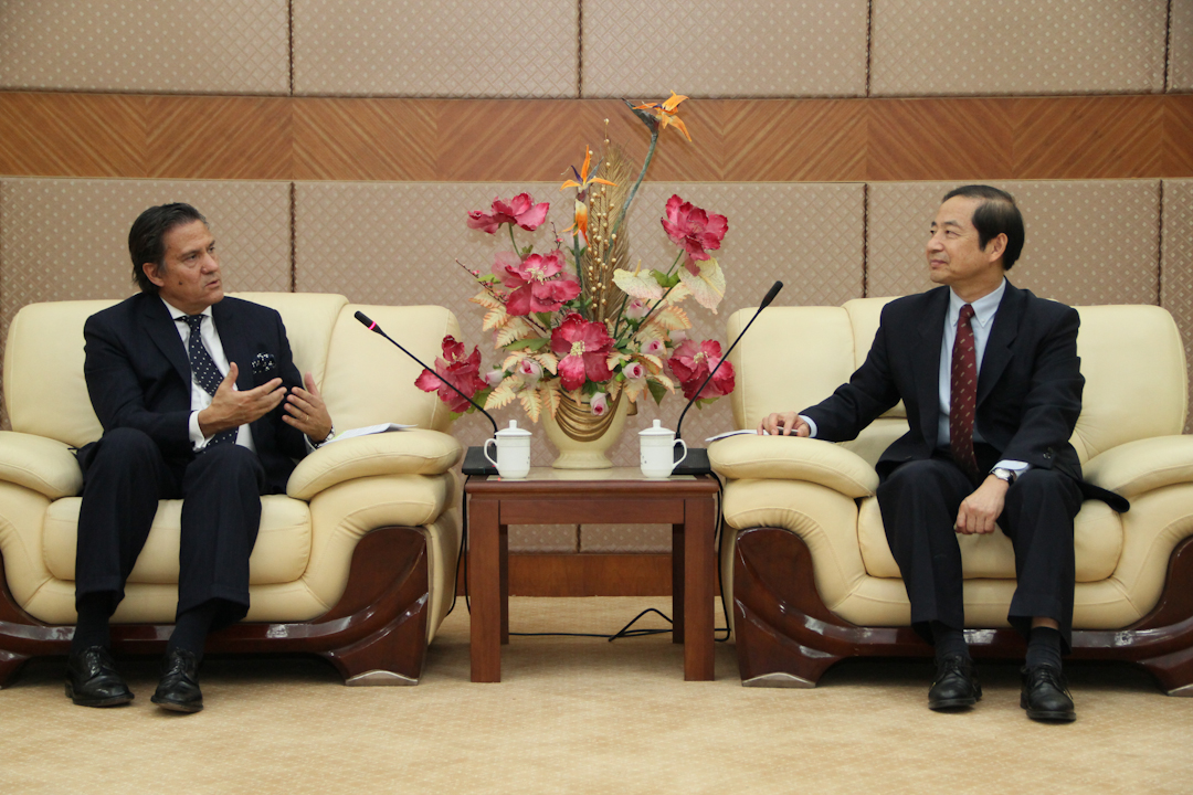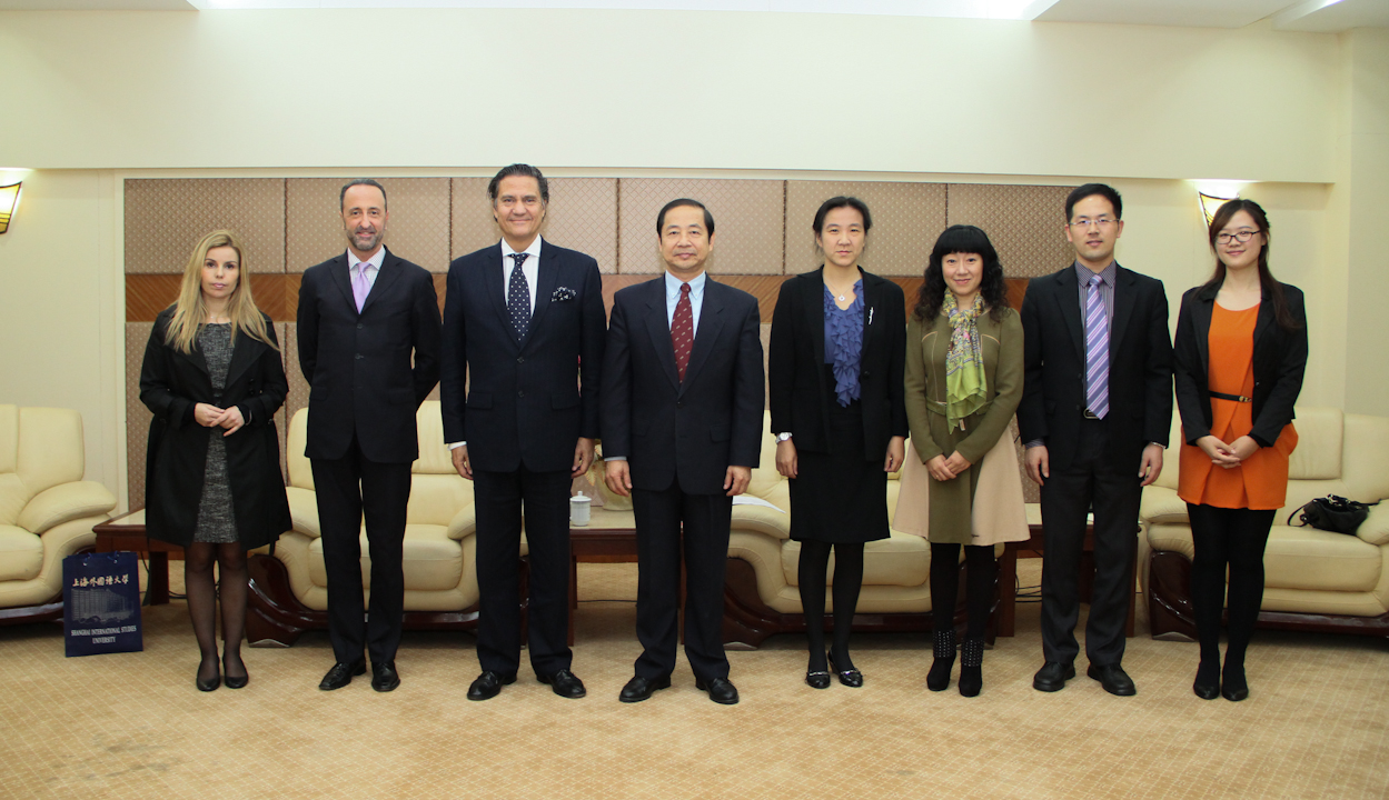 2013年11月12日下午,葡萄牙新任驻华大使Jorge Torres-Pereira与驻沪总领事João Pedro Fins-do-Lago来访我校,拜会校长曹德明教授,并与我校葡萄牙语专业师生进行交流。曹德明校长于松江校区贵宾厅会见了到访的客人,双方就语言人才培养、葡萄牙语发展、中葡高校合作的前景等话题交换了意见。