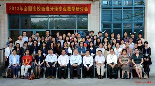我校西方语系主任、教育部高校外国语言文学类专业教学指导委员会副主任委员、西班牙语分委员会主任陆经生教授主持了会议,通报《2013-2017外指委西语分委主要工作》,传达《高校外国语言文学类专业教学指导委员会2013年度工作计划》及关于制定国标的相关文件讲话,介绍西班牙语分委会已做的有关我国西班牙语专业现状和发展的调研项目。我校西方语系副主任兼西班牙语教研室主任、西语分委会秘书长于漫教授通报了2013年全国西语专业四级测试情况,并作《全国高校西班牙语专业四级测试调研报告(1999-2013)》。西班牙语教研室副主任唐雯参加了会议。