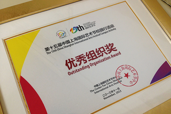 近日,我校获得第十五届中国上海国际艺术节校园行活动优秀组织奖。