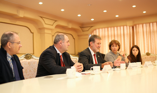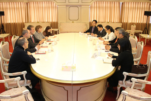 11月12日上午,西班牙瓦伦西亚大学主管经济事务副校长Maximo Ferrando Bolado先生、主管校园发展事务副校长Clara Martinez Fuentes女士与瓦伦西亚大学孔子学院院长Vicente Andreu先生一行来访我校,与我校对外合作交流处、国际金融贸易学院、国际工商管理学院及西方语系负责人进行了会面,商谈了本科生交换、联合培养博士等国际合作项目。