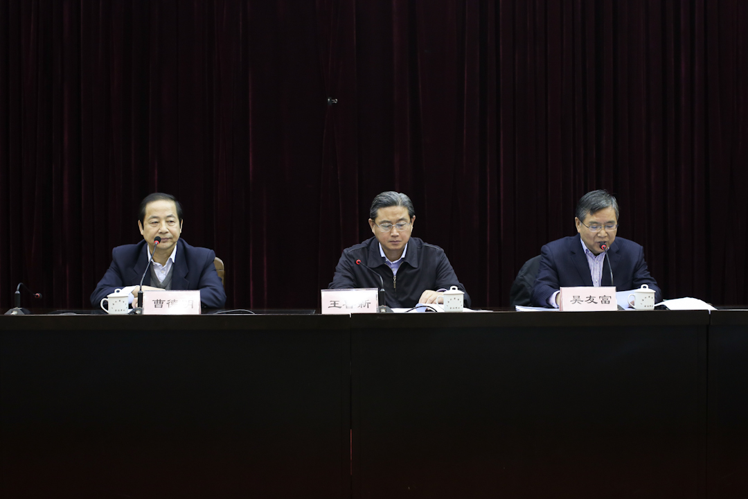 督导组副组长王鲁新出席会议,吴友富书记作情况通报,曹德明校长主持会议