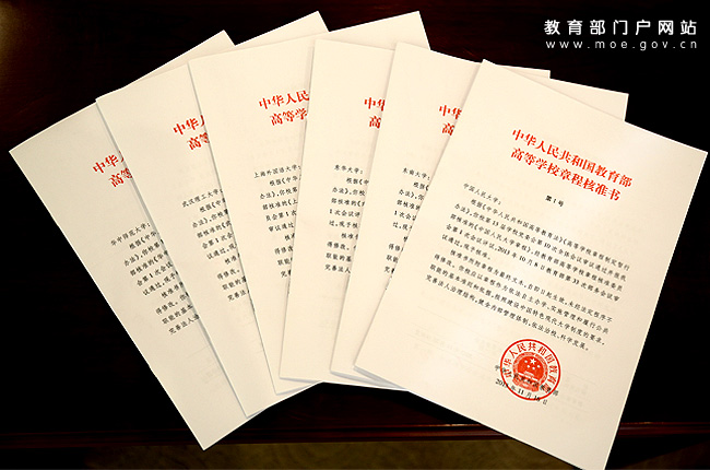 第一批高等学校章程核准书(中国教育报记者 高海涛摄)
