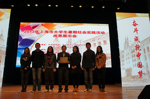 今年,上外师生在上海市大学生暑期社会实践活动中取得了非常优异的成绩。除了我校被评为“最佳组织奖”外,热血青春助童梦,一路南行云那边——上海外国语大学赴云南昭通帮扶留守儿童教育项目获得了“最佳项目奖”;让信息不再成为鸿沟——内蒙少数民族地区城镇居民新媒体使用调查实践服务团等10个项目获得了“优秀项目奖”;和市容绿化局合作的上海绿色生活宣传和创意大赛高校推广实践活动项目获得第五届“知行杯”上海市大学生社会实践大赛二等奖,上海地铁文化现状调查及发展探析项目和独立书店进驻上海外籍社区的可行性研究项目获得三等奖;邢伟健等8位同学获得了“先进个人”称号;黄玮、王慧、胡娟3位老师获得了“优秀指导教师”称号。