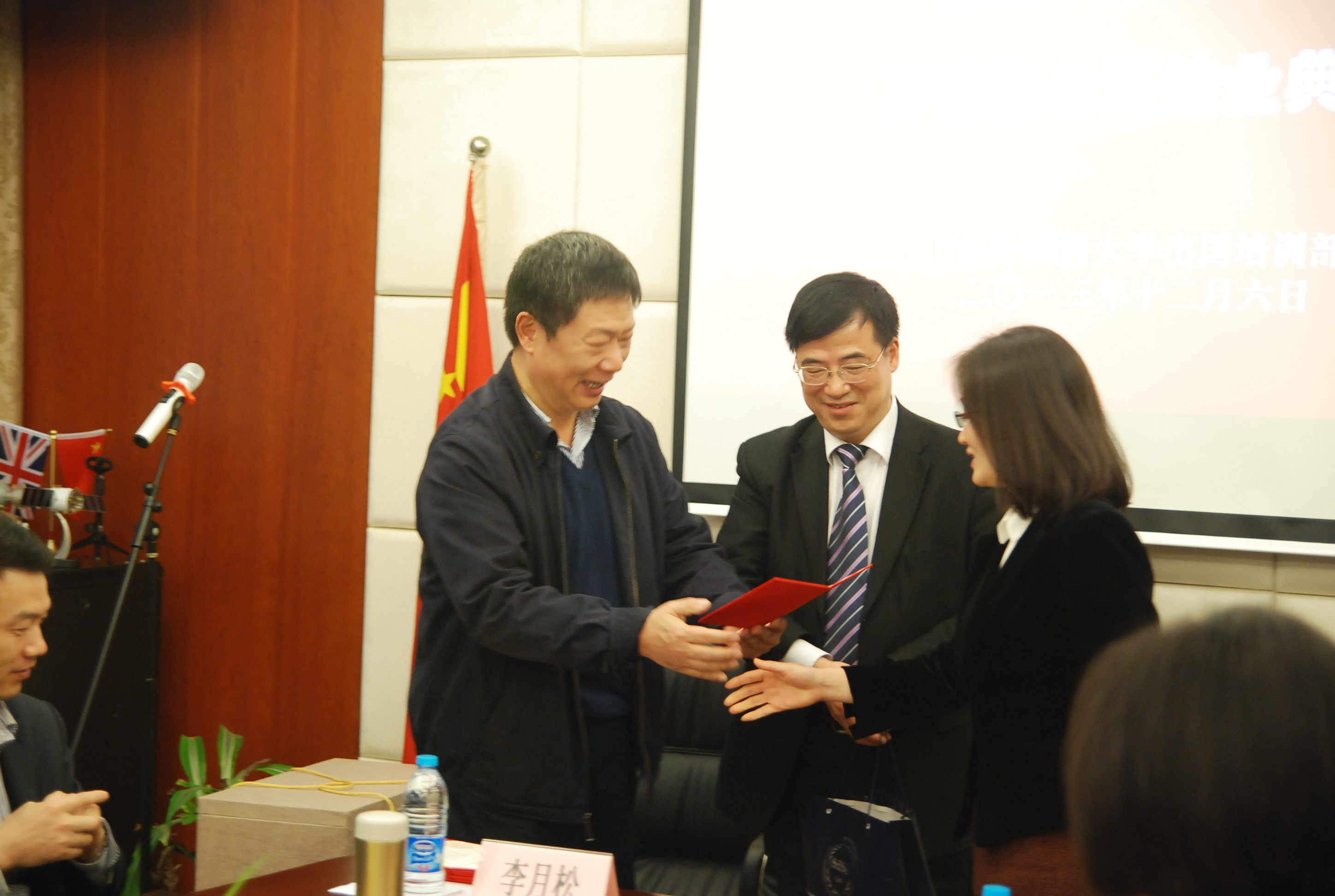上海市优秀青年干部英语强化培训结业仪式日前在出国培训部举行,校党委副书记李月松、出国培训部主任梅德明出席典礼。