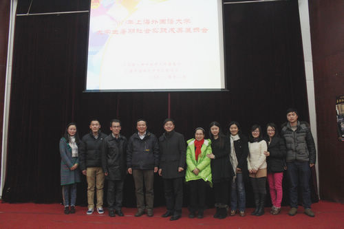 接着,晚会进入到项目展示篇章,这一部分采用形式新颖的飞那儿剧社编排的短剧“上外梦想合伙人”来有机衔接。项目展示集中了今年暑期我校大学生的优秀实践成果,包括“三下乡”项目,中国梦·大学梦·城市梦——上外学子云南楚雄彝族自治州禄丰县土官村文化行、让信息不再成为鸿沟——内蒙少数民族地区城镇居民新媒体使用调查实践服务团、怀中热血,化雨春风——上海外国语大学湖南怀化关爱留守儿童支教服务团、传递希望之火,燃起生命之光——地质灾害逃生知识校园普及行动、温情向北,梦牵固原——上海外国语大学“一路向北”暑期社会实践服务队;“知行杯”项目,上海绿色生活宣传和创意大赛高校推广实践活动、独立书店进驻上海外籍社区的可行性研究;另外,还展示了暑期大学生挂职锻炼项目和海外实践项目等。各项目团队同学展示过程中各显神通,或采用PPT、视频进行项目介绍、经验分享,或采用短剧小品形式增强舞台效果,抑或是结合专业特色进行诗歌朗诵,真是各具特色,精彩纷呈。在人物访谈环节,晚会安排了市级优秀指导教