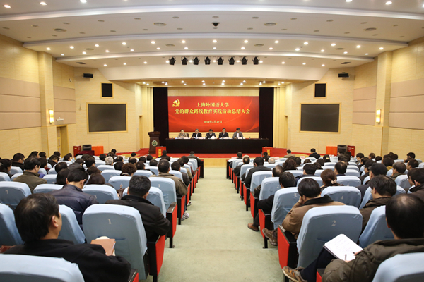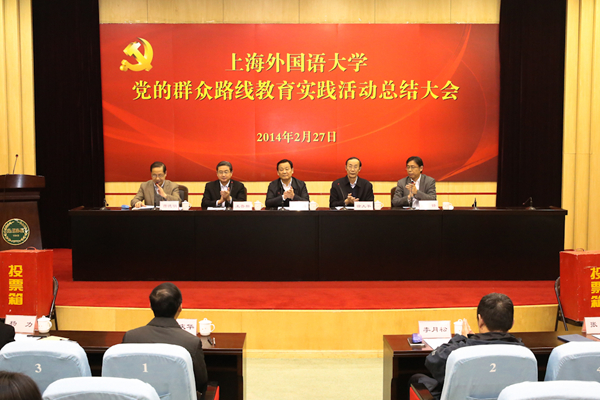 2月27日下午,上海外国语大学在虹口校区会议中心第一报告厅召开党的群众路线教育实践活动总结大会,全面总结上外教育实践活动的开展情况。会议总结了学校从2013年7月至2014年2月开展教育实践活动的总体情况;教育部第四督导组对上外党的群众路线教育实践活动开展情况进行了总体评价,并对进一步抓好整改落实等工作提出明确要求。会议还对上外领导班子及班子成员教育实践活动开展情况进行了民主评议。