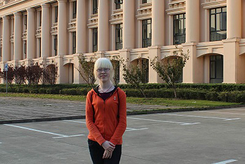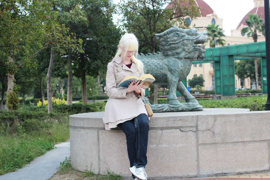 你是否在校园里注意过这样一个女孩?她有着白色的头发、白色的皮肤,眼睛也由于低视力而看不清路人的面庞。她便是国际教育学院的王思杰。在中国,像王思杰同学这样患白化病的孩子有一个美丽的名字:“月亮的孩子”。