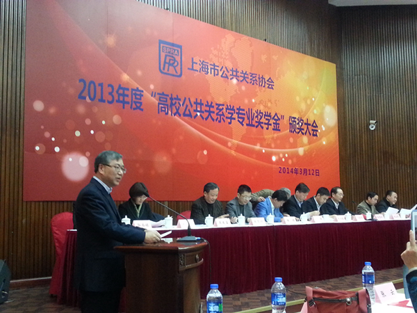 3月12日下午,“上海市公共关系学专业专项奖学金”颁奖大会在上海市教育会堂隆重举行。上海市公共关系协会会长胡炜,上海市公共关系协会副会长、我校原党委书记吴友富,上海市委统战部副部长赵福禧,上海市教委副主任陆靖,团市委副书记杨元飞,我校冯庆华副校长作为沪上拥有公共关系学专业的学校领导等嘉宾出席了此次大会。