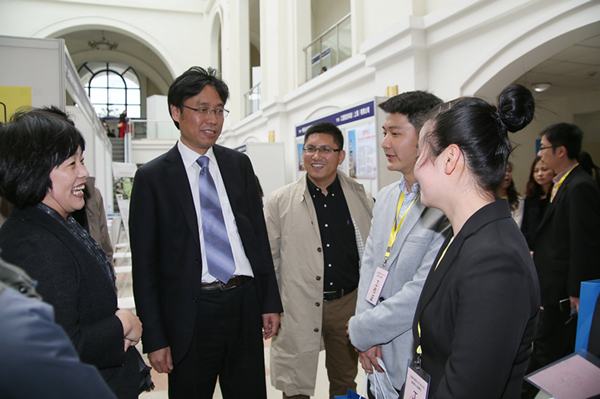 3月28日下午,上海外国语大学2014年学生就业实习招聘会在松江校区师生活动中心成功举行。校党委书记姜锋来到招聘会现场,与部分用人单位代表进行深入交流,全面了解毕业生的就业情况。学生处处长毕昆鹏、副处长皮凡倩以及各院(系)分管书记、辅导员当日在招聘会现场参与会场组织。