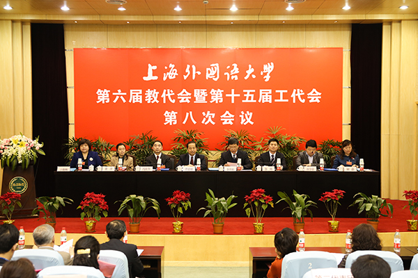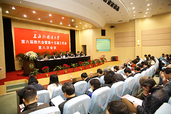 3月28日下午,上海外国语大学第六届教代会暨第十五届工代会第八次会议在虹口校区会议中心第一报告厅开幕。校领导曹德明、李月松、冯庆华、张峰、林学雷,校第六届教代会暨十五届工代会代表、列席代表等250余人参加了会议。