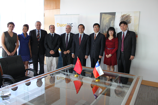 在智利期间,曹德明一行访问了智利宗座天主教杜沃克大学。智利宗座天主教大学共有十四个校区,在校学生七万多人,是一所智利知名的人才培养极具特色的大学,我校于2011年与该校签署了校级交流框架协议。此次曹校长的到访,受到了该校领导的热情接待,双方就进一步开展合作交流、选派对方大学学生参加上外汉语及中国文化课程学习以及上外学生前往该校交流等多项内容进行了深入探讨。会后,两校校长签署了学生校际交流的专项协议。根据该协议,两校的校际互换项目将于20149月启动。协议签署后,曹德明接受了当地媒体的采访。
