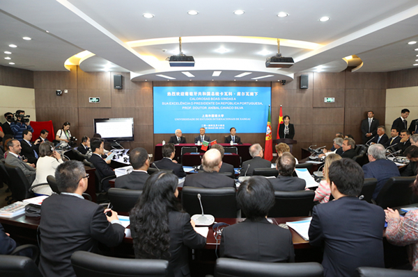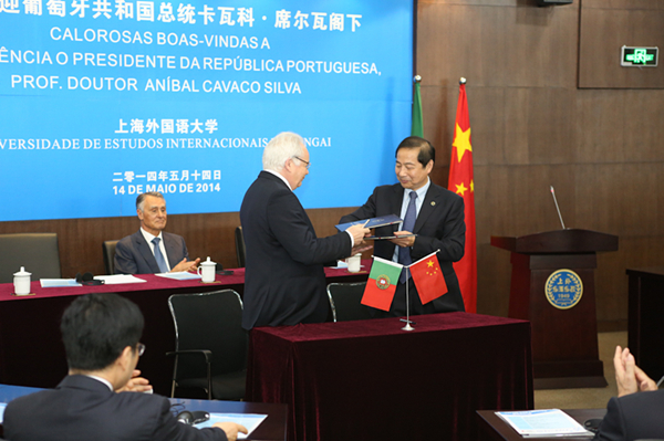 5月14日上午,上海外国语大学与葡萄牙里斯本新大学合作框架协议以及上海外国语大学与里斯本新大学商学院“2+2”协议签订仪式在上外虹口校区会议中心第二报告厅举行。正在上海外国语大学访问的葡萄牙总统席尔瓦和随同总统来访的葡萄牙政府外交部部长、教育部部长等见证了两校合作协议签字仪式。