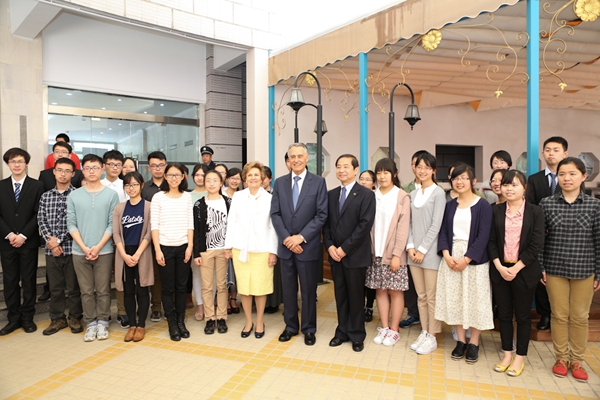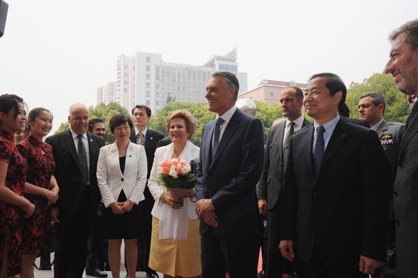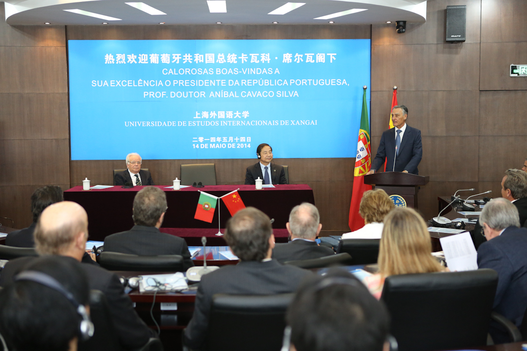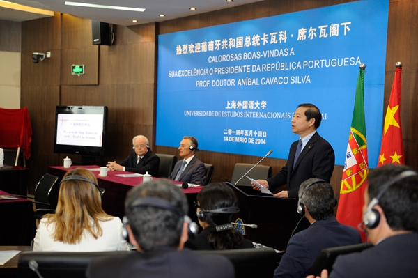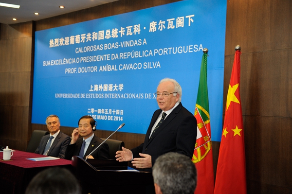 5月14日上午,葡萄牙共和国总统卡瓦科·席尔瓦(Cavaco Silva)阁下率团访问上海外国语大学。席尔瓦总统在上外举行的“语言的价值”研讨会闭幕式上发表了精彩演讲。上海外国语大学校长曹德明、副校长冯庆华、西方语系葡萄牙语专业师生和其他院系师生代表、葡萄牙在上外留学生等出席欢迎仪式。
