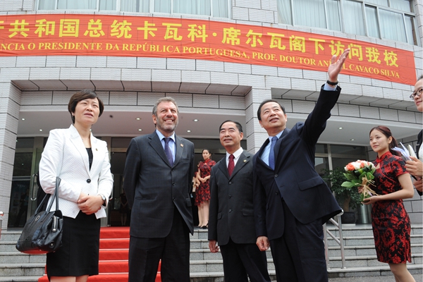 席尔瓦总统对上海外国语大学办学事业所取得的成就尤其是在葡语专业建设与葡语人才培养上所取得的成就予以高度赞扬。他指出,与上外师生的交流将有助于增进两国人民之间的相互理解。他希望更多的葡萄牙学生能来中国、来上外学习,从而不断推动两国关系的发展。
