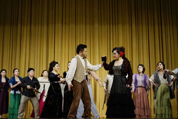 在演出进入尾声,演员谢幕的时候,全场观众起立鼓掌,向所有演员致敬。对于这样一场精彩的视听盛宴,同学们对学校高雅艺术进校园的项目表达了感谢。短短2个小时,同学们身临其境地进入到《卡门》的情节中,听到了耳熟能详的《爱情是一只自由的鸟儿》《斗牛士之歌》等经典曲目,现场感受到了演员们优美的歌喉和完美的演技。演员们全场均的法语演唱,不仅让同学们领略到了歌剧艺术,更让大家对西方语言和文化有了进一步的了解。(校党委宣传部、团委艺术教育中心)