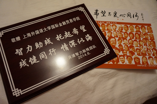 6月7日下午,“希望与爱心同行——黄浦智力助残团队成立十五周年座谈会” 在上海市残联康复中心底楼多功能厅召开。上海市肢残人协会主席、市残联主席团副主席、市政协常委徐风建,上海市精神文明办副主任姜鸣,黄浦区副区长吕南停出席了座谈会,我校国际金融贸易学院党组织书记忻炯俊作为唯一一所受邀的高校代表也出席了本次座谈会。金贸学院同时被授予“智力助残,托起希望;残健同行,情深似海”纪念奖牌。