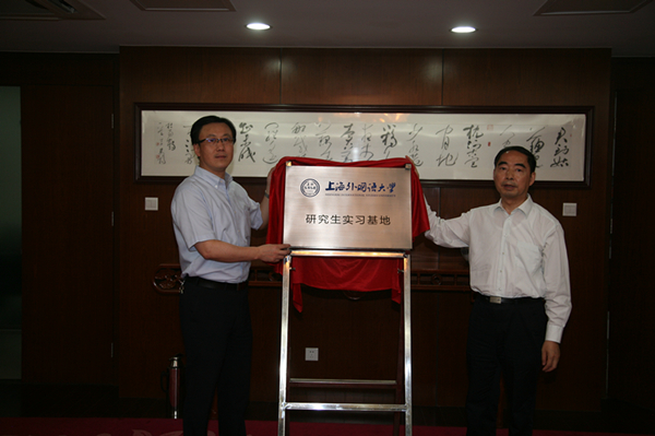 会谈后冯庆华副校长和徐华东主任共同签署了研究生实习基地协议,并为上海外国语大学研究生实习基地揭牌。