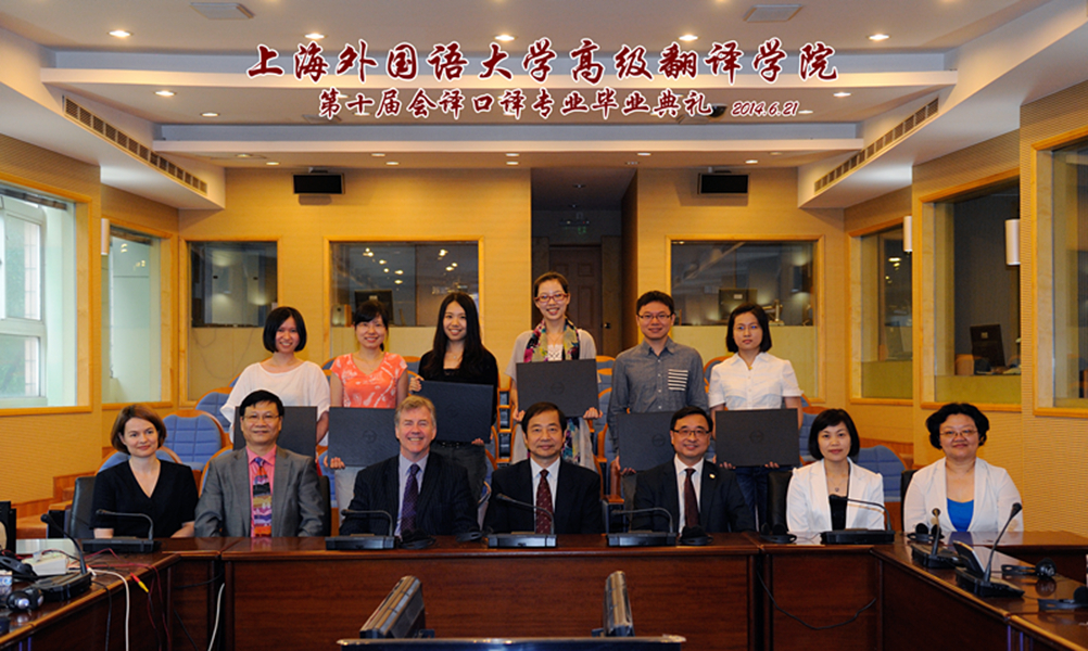 6月21日,上海外国语大学高级翻译学院第十届会议口译专业毕业典礼在虹口校区举行。校长曹德明、欧盟委员会口译总司代表Paul Brennan、联合国驻日内瓦办事处代表吴军和来自译界的多位考官专家一同出席典礼。典礼由高级翻译学院副院长戴惠萍教授主持。