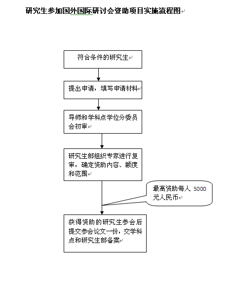 国际化教育基金管理——研究生参加国外国际研讨会资助项目实施流程图