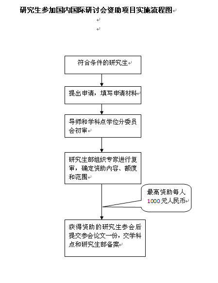 国际化教育基金管理——研究生参加国内国际研讨会资助项目实施流程图