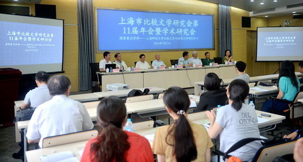 7月5日,上海市比较文学研究会第十一届年会暨学术研讨会在上海师范大学举行。年会主题为“跨文化视野下的中外文学关系”。年会由上海师范大学国家重点学科“比较文学与世界文学研究中心”承办。来自复旦大学、上海外国语大学、华东师范大学、上海师范大学、上海大学、同济大学、东华大学、华东政法学院、上海市社会科学研究院、上海市艺术研究所等单位的比较文学及相关学科近百名会员与会。上海师范大学党委书记陆建非教授到会致辞,上海市社科联学会处处长王克梅女士与会。年会的学术研讨分为主旨报告和分组讨论两个环节。三位著名学者作大会主旨报告。复旦大学图书馆馆长、教育部长江学者陈思和教授的“海外华文文学研究”、华东师范大学陈建华教授的“百年中国外国文学研究”、上海交通大学致远讲座教授叶舒宪的“在特洛伊黄金与石峁城的玉神话中发现历史”,均体现了名师丰厚的学术内涵与前沿的学术见谛。