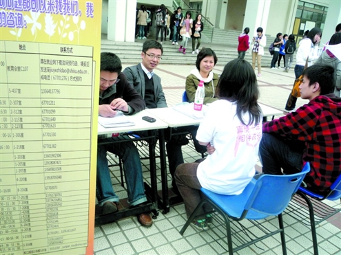在采访过程中,上外大三法语专业的张同学就拿出手机,向记者展示了上外就业指导中心运营的微博和微信。“我很喜欢学校建立的这些微博、微信平台,它们总能及时向我们推送各类就业信息,并经常即时分享我们最关注的就业话题。”张同学告诉记者,学生在校园还可以通过易班平台、飞信群、就业信息网等公众平台获得与职业发展相关的信息。“我觉得新媒体的资讯推送很迅速,接收也很方便,课间或在公交车上都能查看信息。”