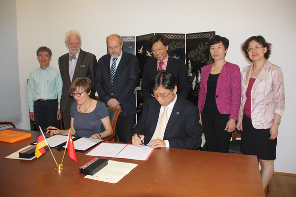 此次出访德国,代表团还分别与德意志学术交流中心(DAAD)秘书长和德国国际教育研究所(DIPF)所长以及德国外交部文化教育事务专员等会晤,签署了战略合作协议。DAAD将全力支持我校的德国研究,并资助我校设立一个长期讲席教授职位,DIPF将在中德教育研究方面为我校提供文献、档案和资讯。