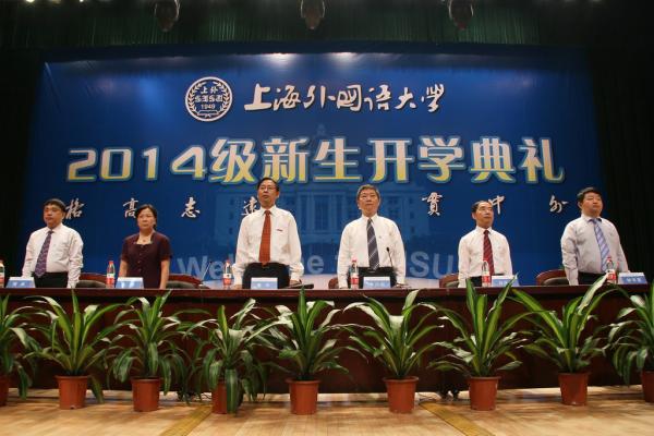 9月16日上午,上海外国语大学2014级本科生开学典礼在松江校区教育会堂举行。校党委书记姜锋、副书记李月松、王静,副校长冯庆华、周承,总会计师林学雷等学校领导出席仪式。仪式由校党委副书记李月松主持。